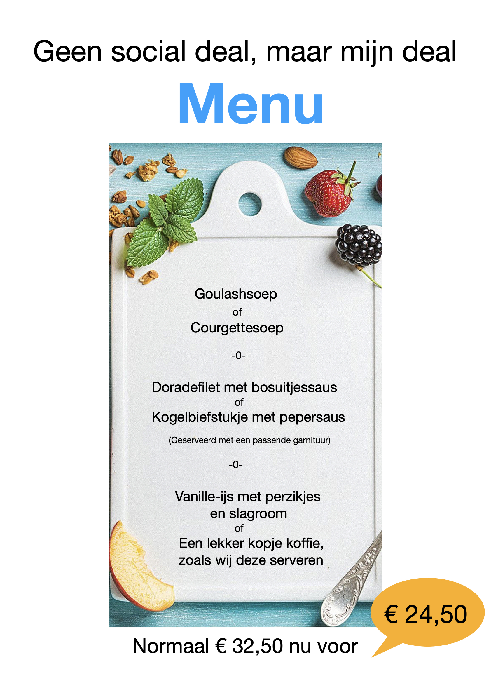 Het mijn deal menu van November en de suggesties voor de kerstmis